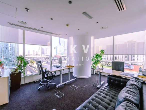 Lease a prestige address at a fully fitted, canal-view office on a high floor. This 3,079 sqft workspace comes with five glass-partitioned rooms, three dedicated parking bays, and shared floor washrooms. The tower is a 36-storey commercial landmark developed by Al Massaleh with retail, a health-club level, and ample podium/basement parking—right by Downtown, DIFC, and Sheikh Zayed Road. Availability from 23 Nov 2025; viewing by appointment.